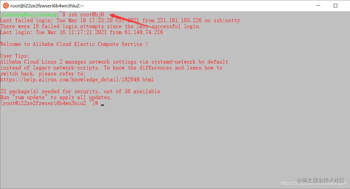 4、执行上面命令后就可以免密登陆远程bj0服务器了,使用下面命令进行登陆