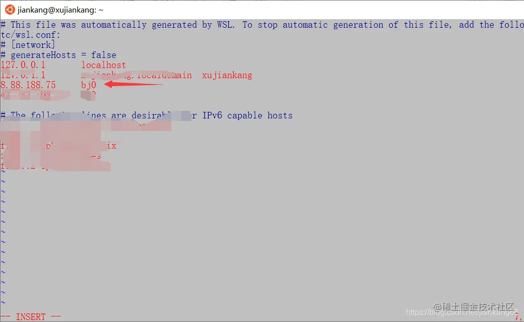 (4)本机Ubuntu应用通过执行下面的命令打开hosts,给ip起个域名,为了操作方便,也可以不加,直接都通过输入ip地址进行操作。