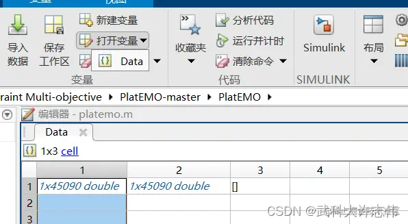 - 即会出现这样的小窗口,在主窗口选择打开变量Data{},其中打开的即是对应图形中真实PF的信息。