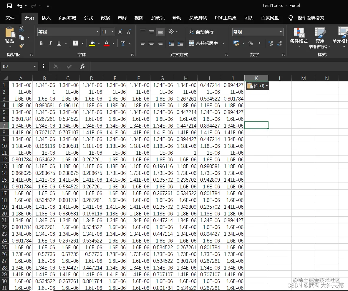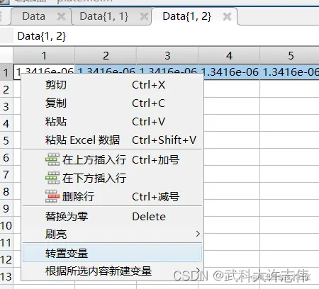 - 新建一个excel表格保存数据,注意,如果直接将一整行进行保存,可能出现excel中列不够的情况,因此需要先将矩阵在platEMO中转置后变成一列再复制到Excel中。由于目标数是10是固定的,因此只需要对目标对应的函数值进行处理。