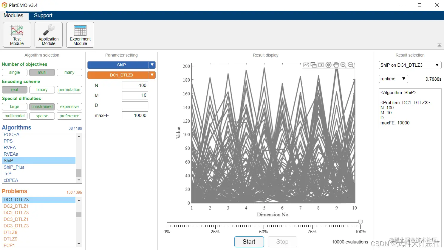 - 众所周知,我是Jmetal的重度爱好者,最近实验遇到一些难以解决的困难,当我在进行超多目标优化实验即MaOP时,需要M=10及以上的PF,然而在benchmark中没有提供,而且Jmetal不支持通过均匀取点的方式生成PF。因此,经过老师的指导,我们选择使用在PlatEMO中运行完相应目标数量的benchmark problem后,将通过均匀踩点得到的真实PF提取出来作为在Jmetal上进行实验的真实PF.