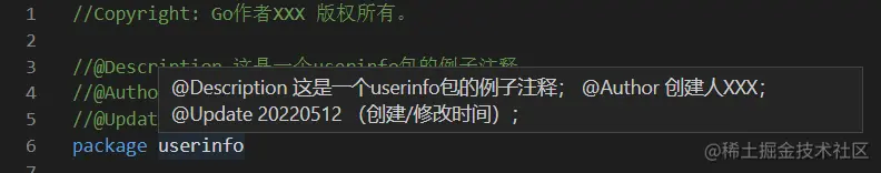 // @Description 这是一个userinfo包的例子注释;
