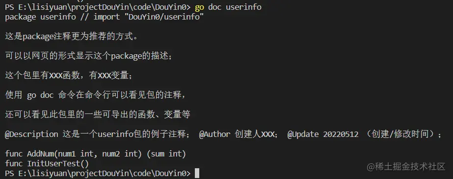 a. Go doc命令,在命令行中查看代码注释