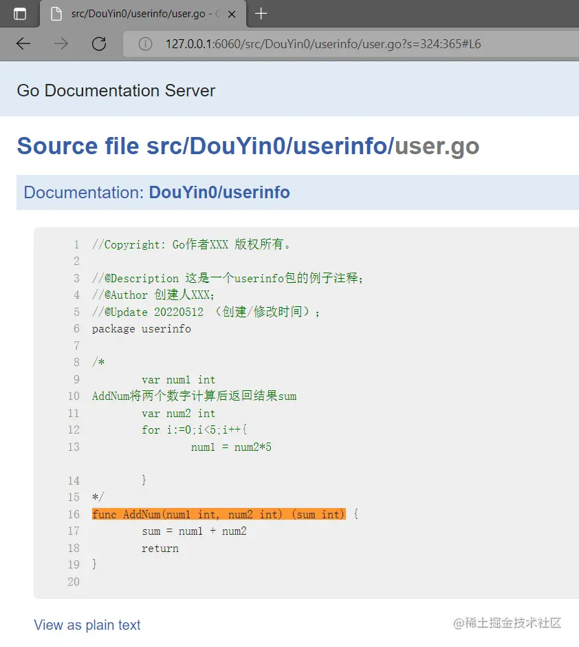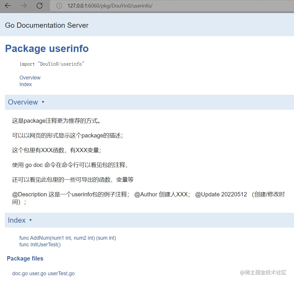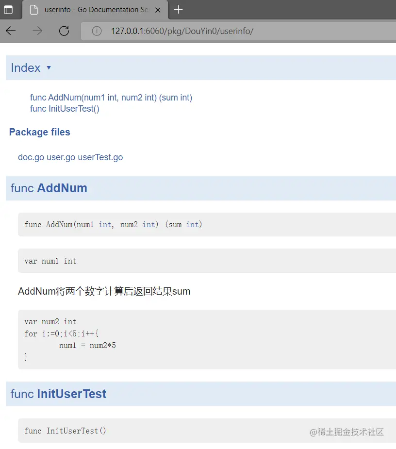 - 再在浏览器中打开链接:http://127.0.0.1:6060/pkg/项目名/包名