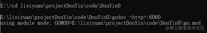 (这个结果表示已经正常启动,如果不能正常启动说明需要安装godoc)