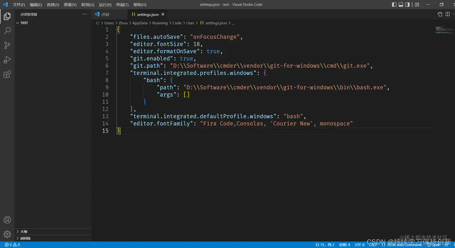 使用Cmder的wiki(Seamless VS Code Integration · cmderdev/cmder Wiki · GitHub)进行配置,使用Cmder内嵌的Git在VSCode中使用,为了方便起见,我直接贴在下面,注意将你的Cmder路径进行替换。