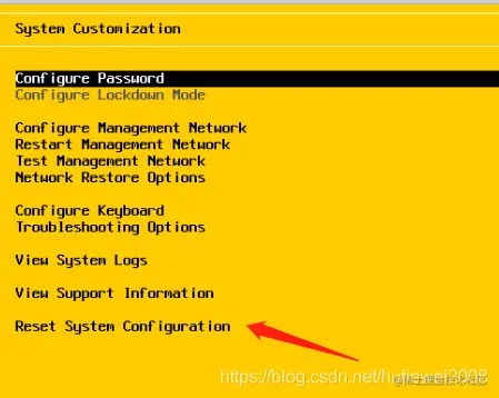 在服务器上重置系统配置。之后重新配置IP,浏览器登陆,使用root空密码,即可。就可以使用web端,管理VMware esxi系统了。