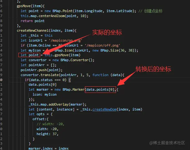 在代码中实现经纬度的转换,如下图: