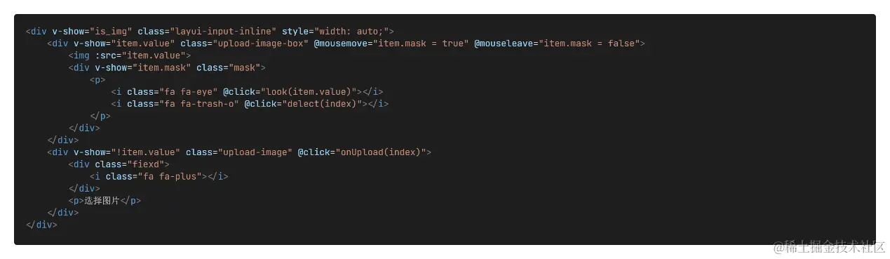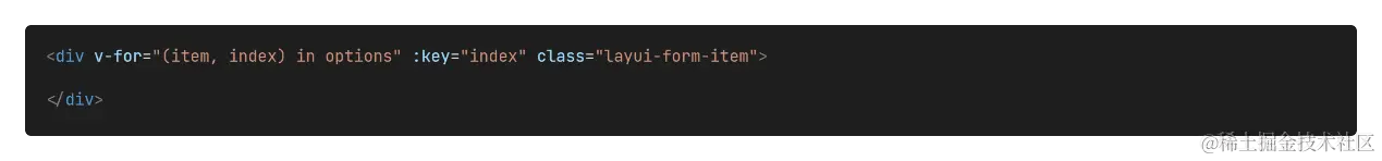 如上图所示,使用 v-for 指令循环 options 选项数组。options 数组保存添加的选项数据。