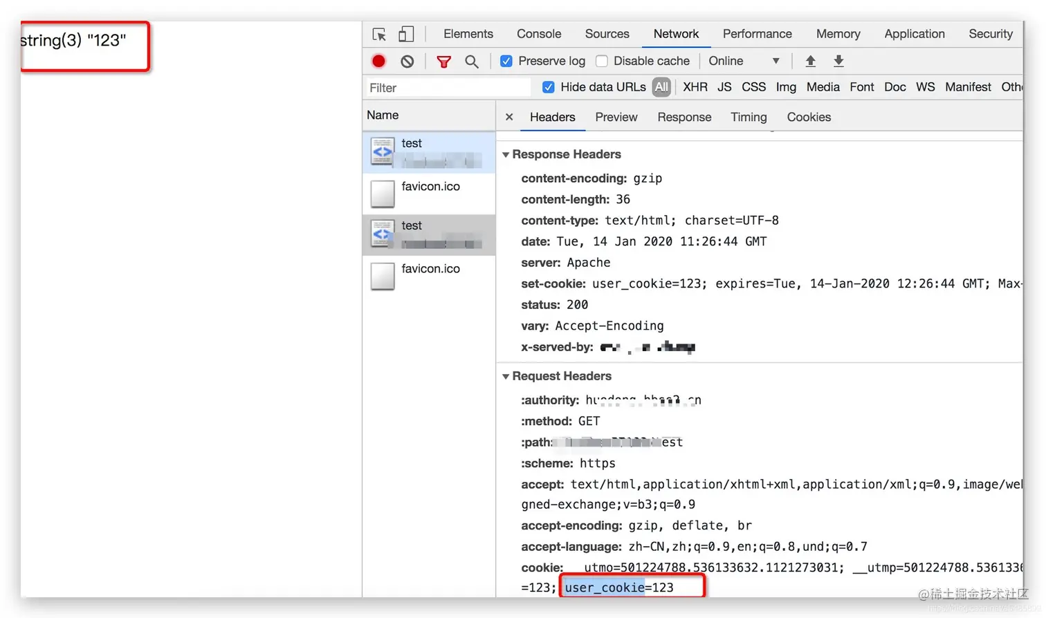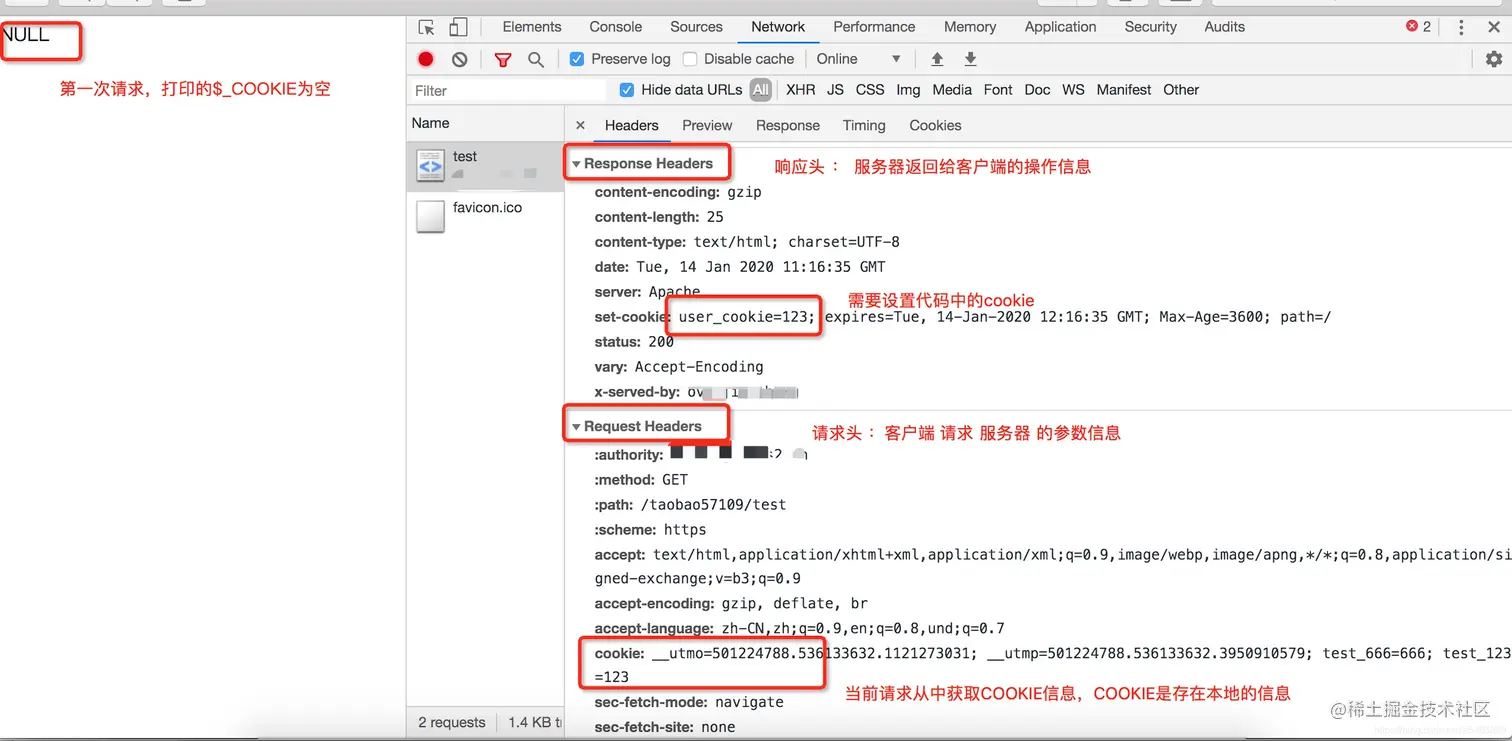 3、当第二次请求的时候,由于服务器让浏览器存入了cookie文件,在浏览器的请求头信息中已经有了,具体可以参照下图