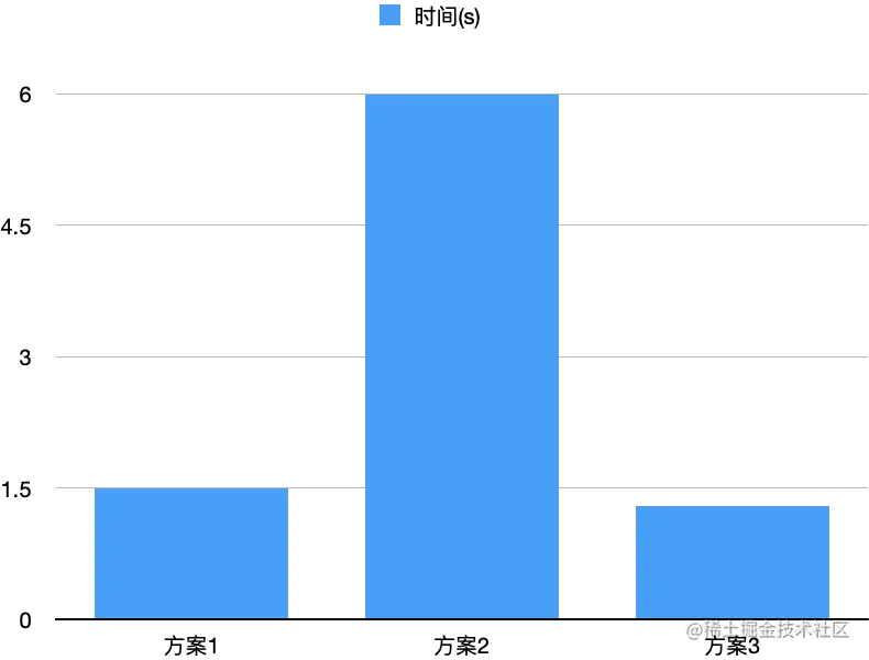 从 IO 的视角,乍看之下,方案1通过使用足量内存,不存在顺序读写;方案2存在随机读和随机写;方案3存在随机写;直观上方案1性能更好。然而,由于 PageCache 的存在,方案3在写文件时原文件大概率缓存在 PageCache 中,因此实测下来方案3的性能更好,如下图所示。
