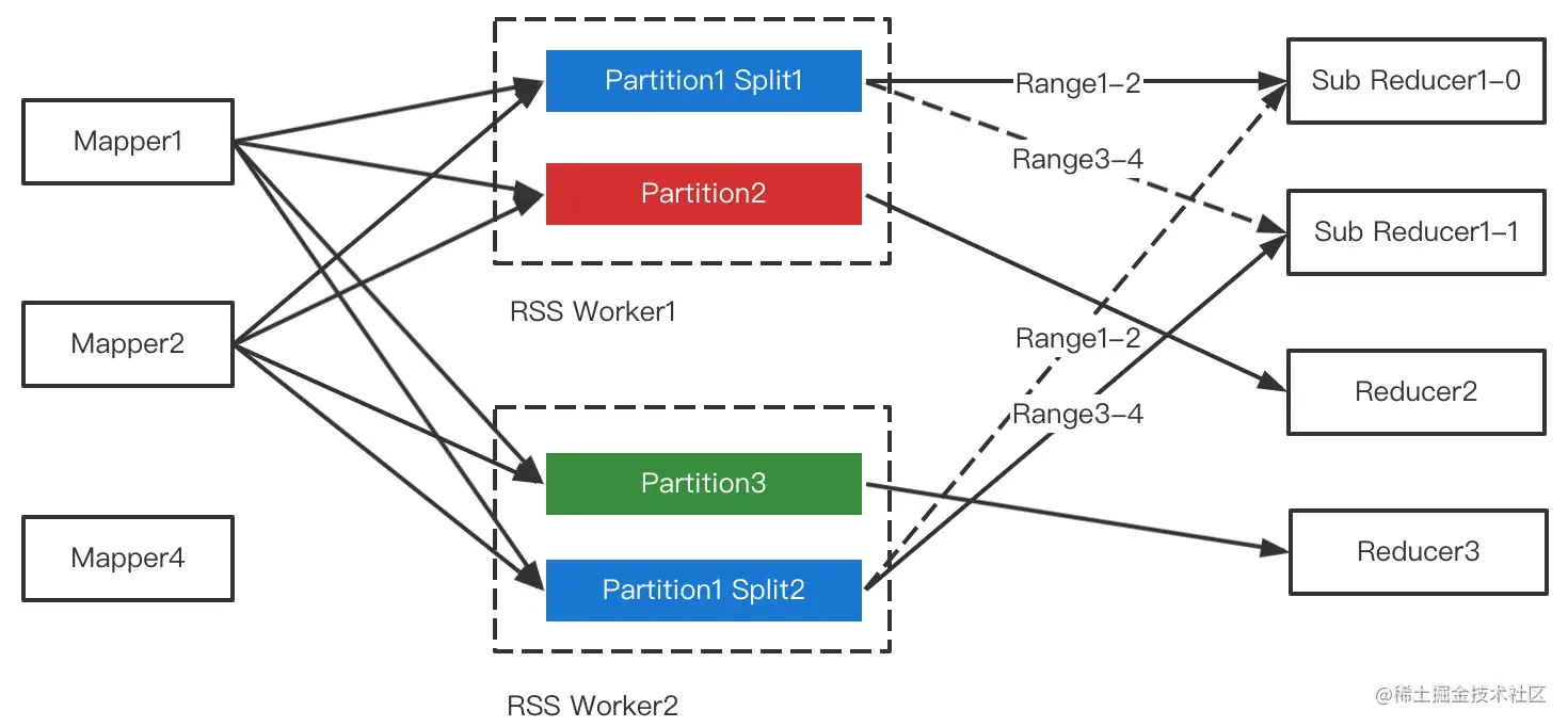 阿里云EMR 自2020年推出 Remote Shuffle Service(RSS) 以来,帮助了诸多客户解决 Spark 作业的性能、稳定性问题,并使得存算分离架构得以实施。为了更方便大家使用和扩展,RSS 在2022年初开源(https://github.com/alibaba/RemoteShuffleService),欢迎各路开发者共建: ) RSS的整体架构请参考[1],本文将介绍 RSS 最新的两个重要功能:支持 Adaptive Query Execution(AQE),以及流控。