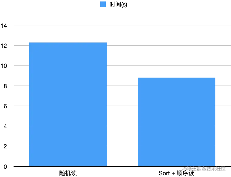 同时方案3无需占用进程额外内存,故 RSS 采用方案3的算法。我们同时还测试了 Sort On Read 跟上述的不排序、仅做索引的随机读方法的对比,如下图所示。