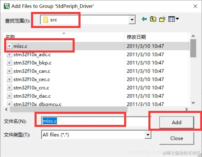 2.error:Error: L6218E: Undefined symbol SysTick_CLKSourceConfig 并不傻的狍子 2022-05-13 389 阅读1分钟 本文已参与「新人创作礼」活动,一起开启掘金创作之路。 定时器配置时钟源函数显示未定义,原因是该函数的misc.c文件没有添加 1、在工程目录中右键添加 2、在目录中查找scr目录,打开 3、发现第一个文件就是misc.c文件,添加 4、再次编译,则编译通过