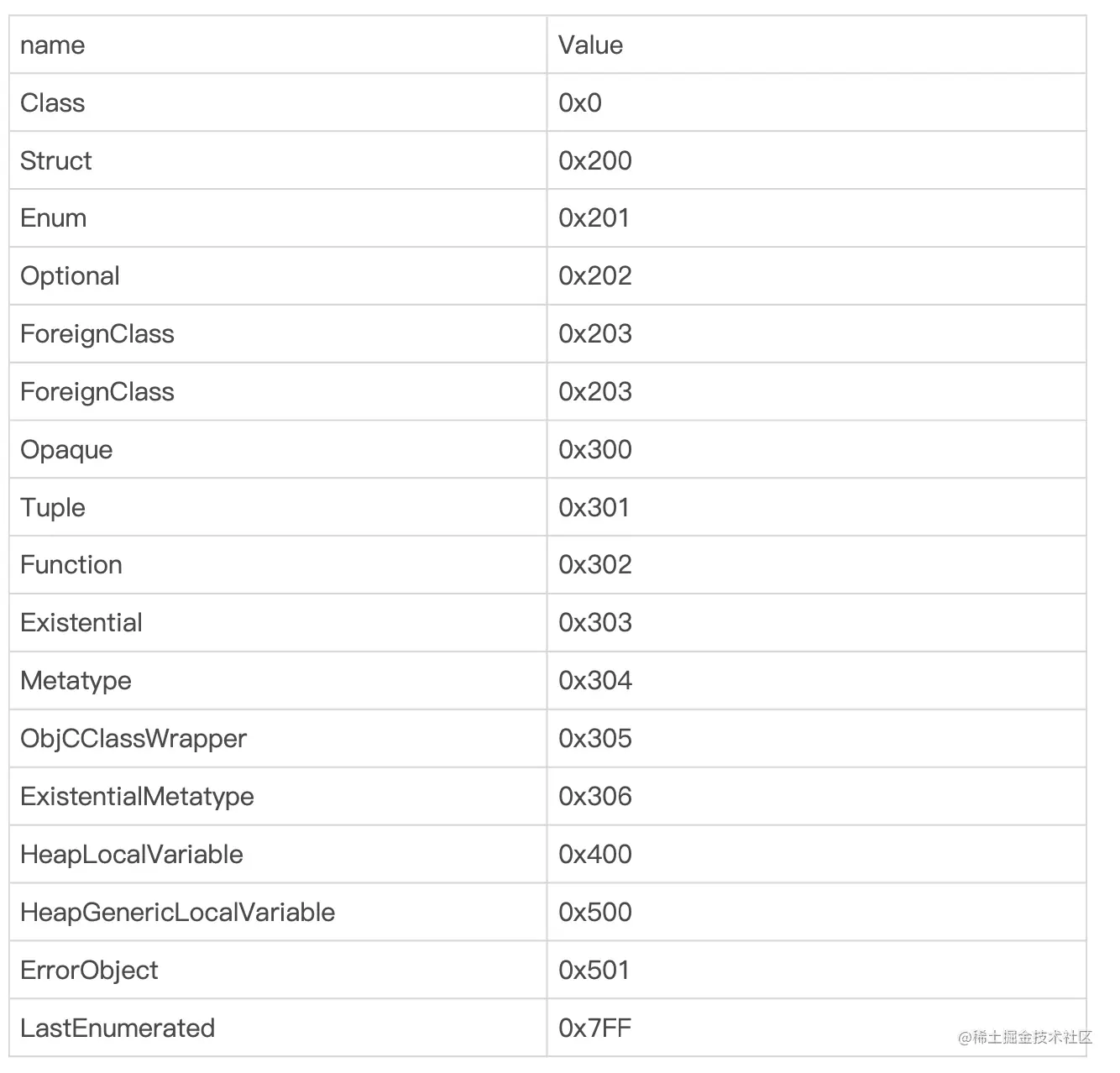 查看 MetadataKind 可得它是一个 uint32_t的类型