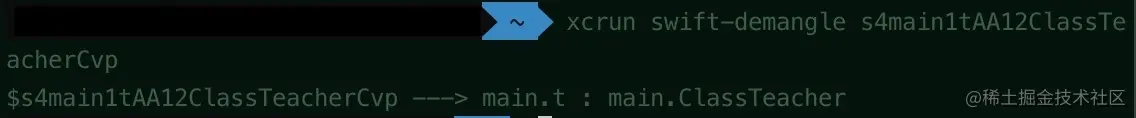 @$s4main1tAA12ClassTeacherCvp混淆的变量名通过xcrun swift-demangle s4main1tAA12ClassTeacherCvp可以得到变量真是名称