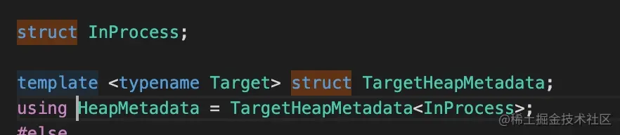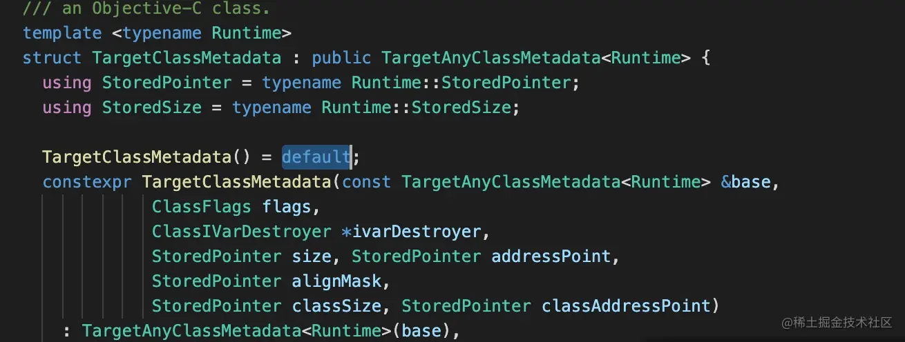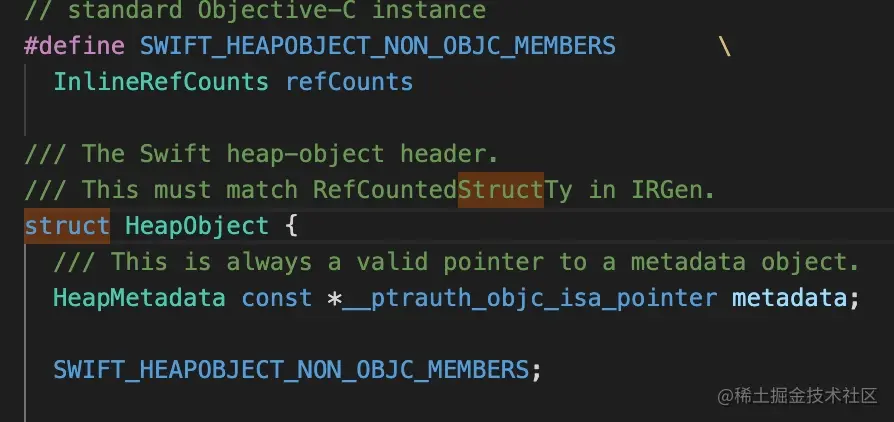 查看 Metadata 的源码可以看到 Metadata 是 HeapMetadata 类型 这是 TargetHeapMetadata 定义的别名
