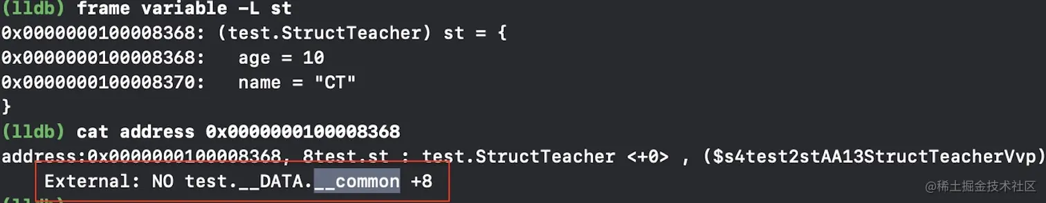 我们可以通过lldb 指令来查看当前变量的内存结构