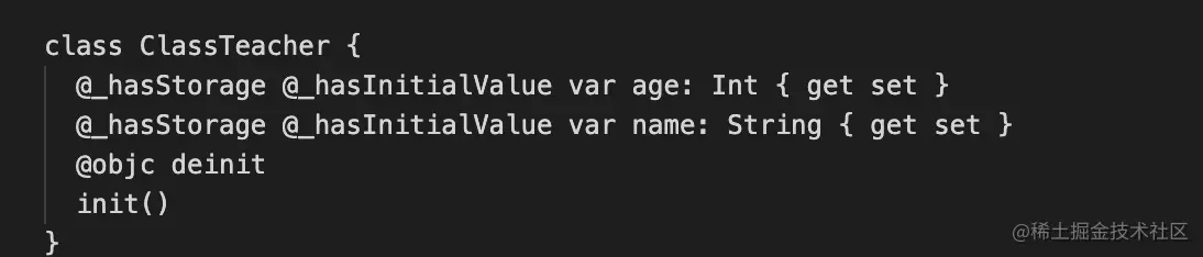 - @_hasInitialValue 标识这个类的结构有初始化的存储属性 age,name 和 默认的 init 和 析构函数