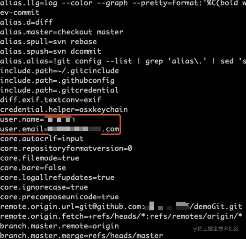 配置好以后我们可以使用git config -l命令来查看我们git的配置信息