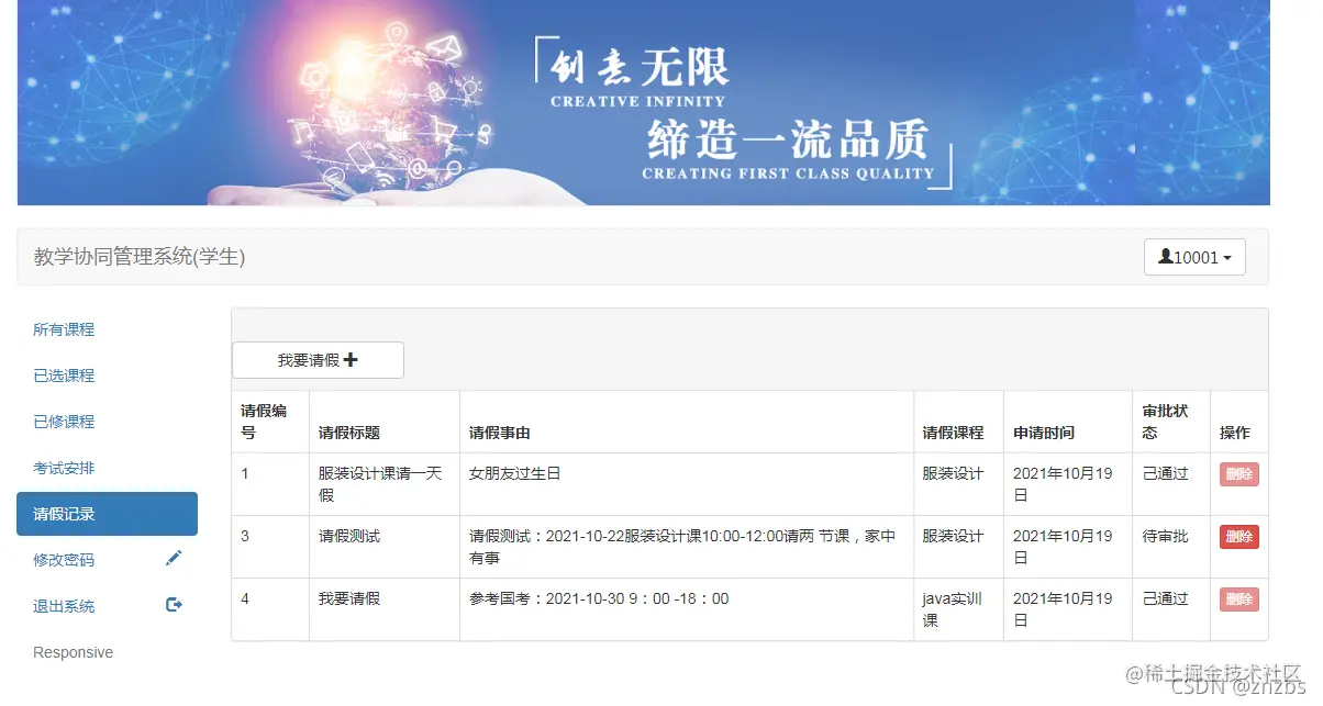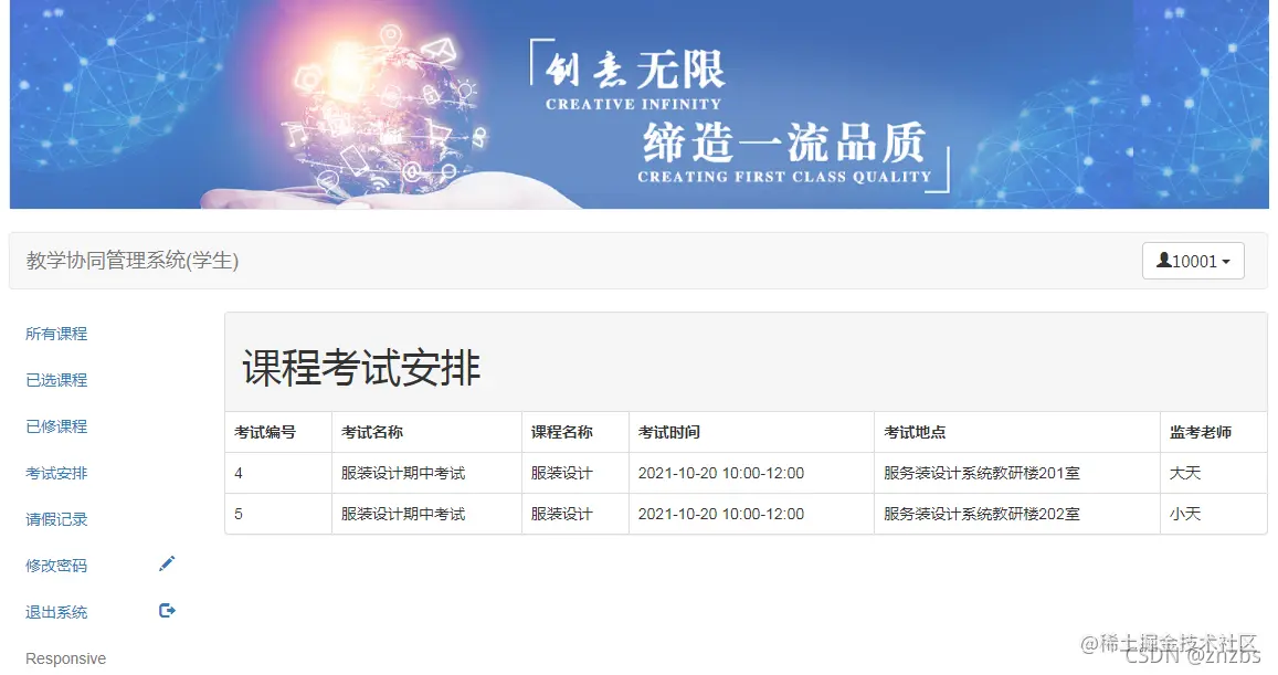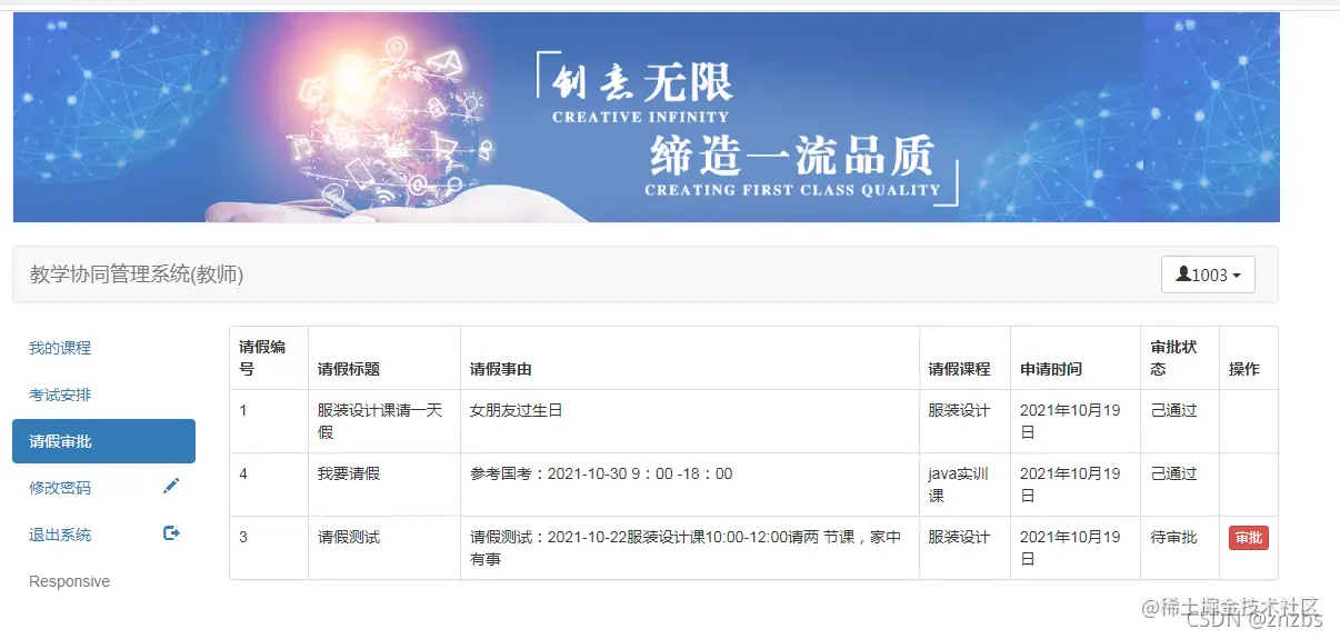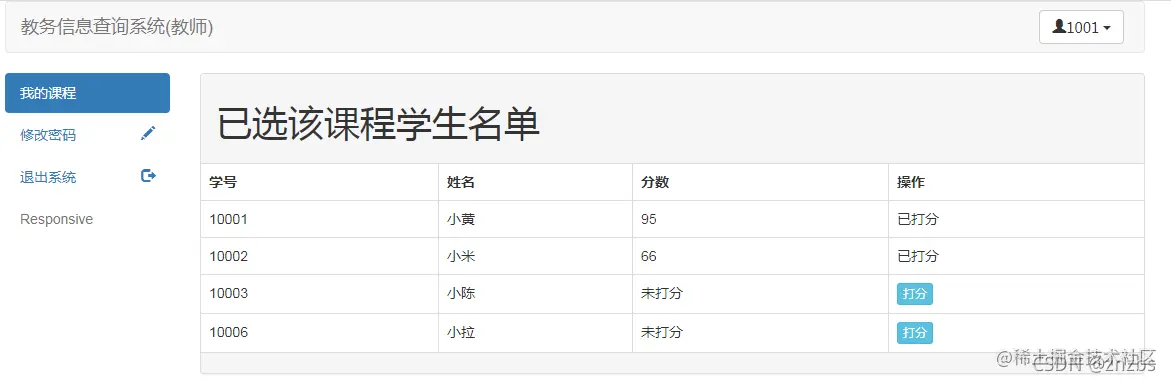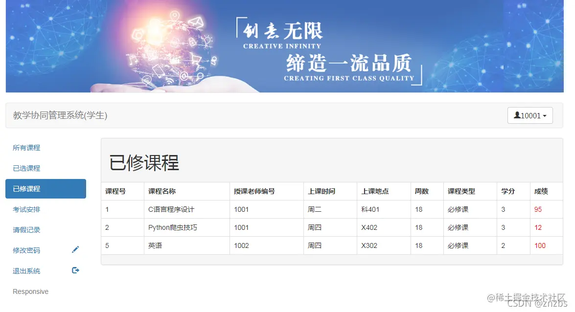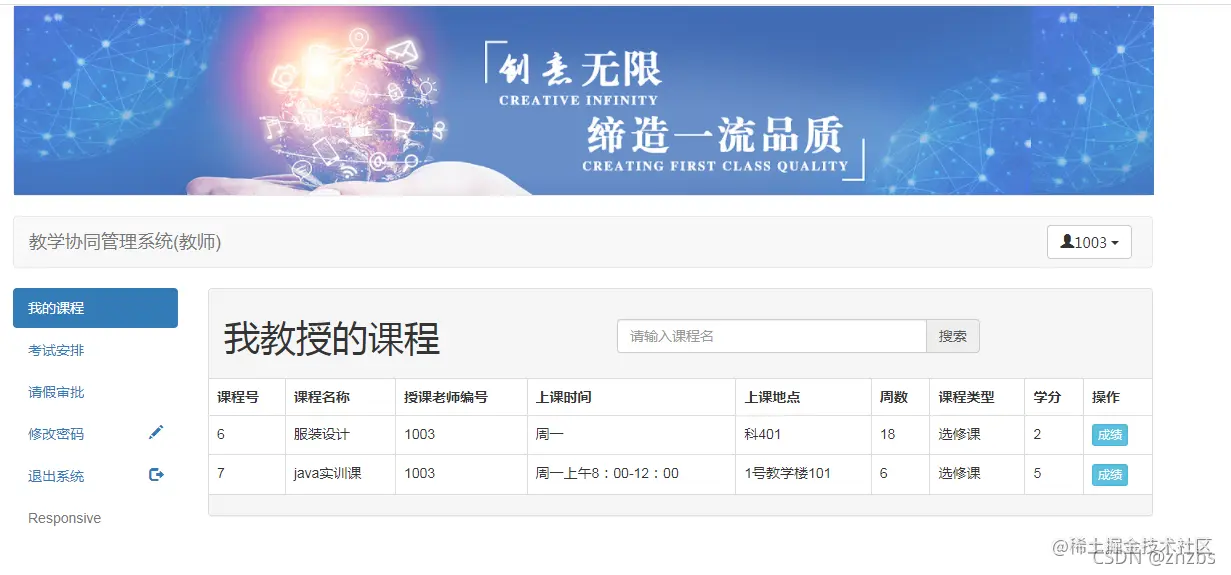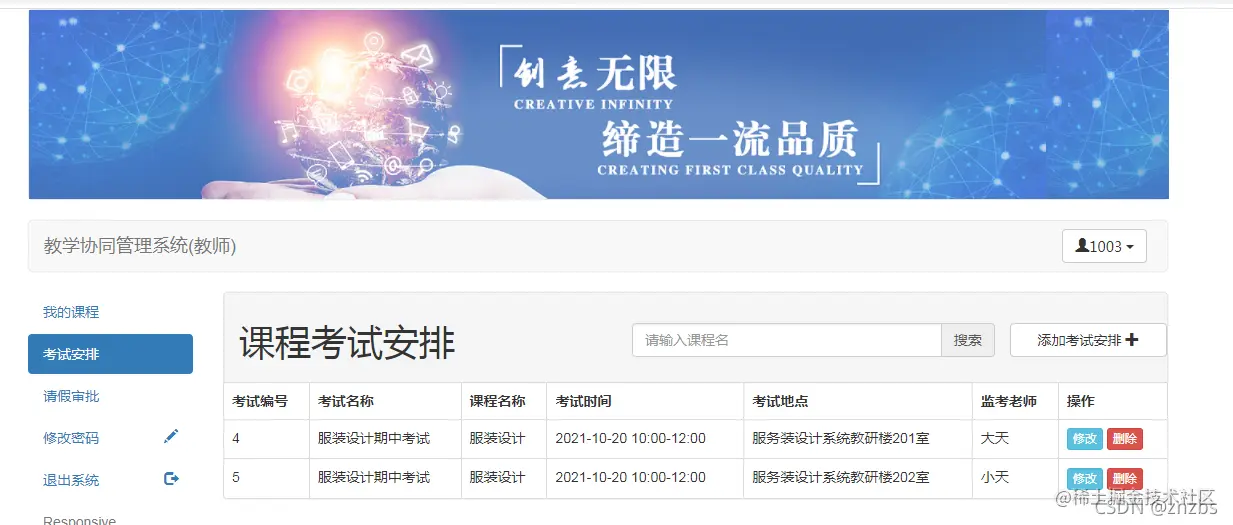 2,教师角色:可以管理选课成绩,对选修本人的课程进行打分,请假审批,管理考试安排信息,个人信息管理等