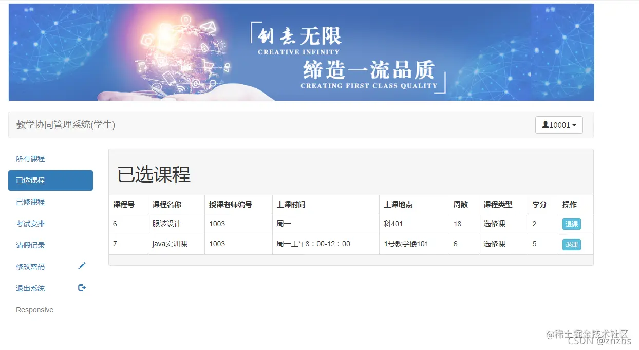 3,学生角色:可以进行选课,退课,查看选课信息,选课成绩,请假,查看考试安排,个人信息管理等