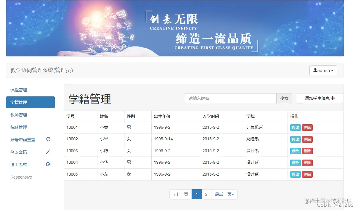 1,管理员角色:可以管理课程,管理教师,管理学生,管理院系,个人信息管理等