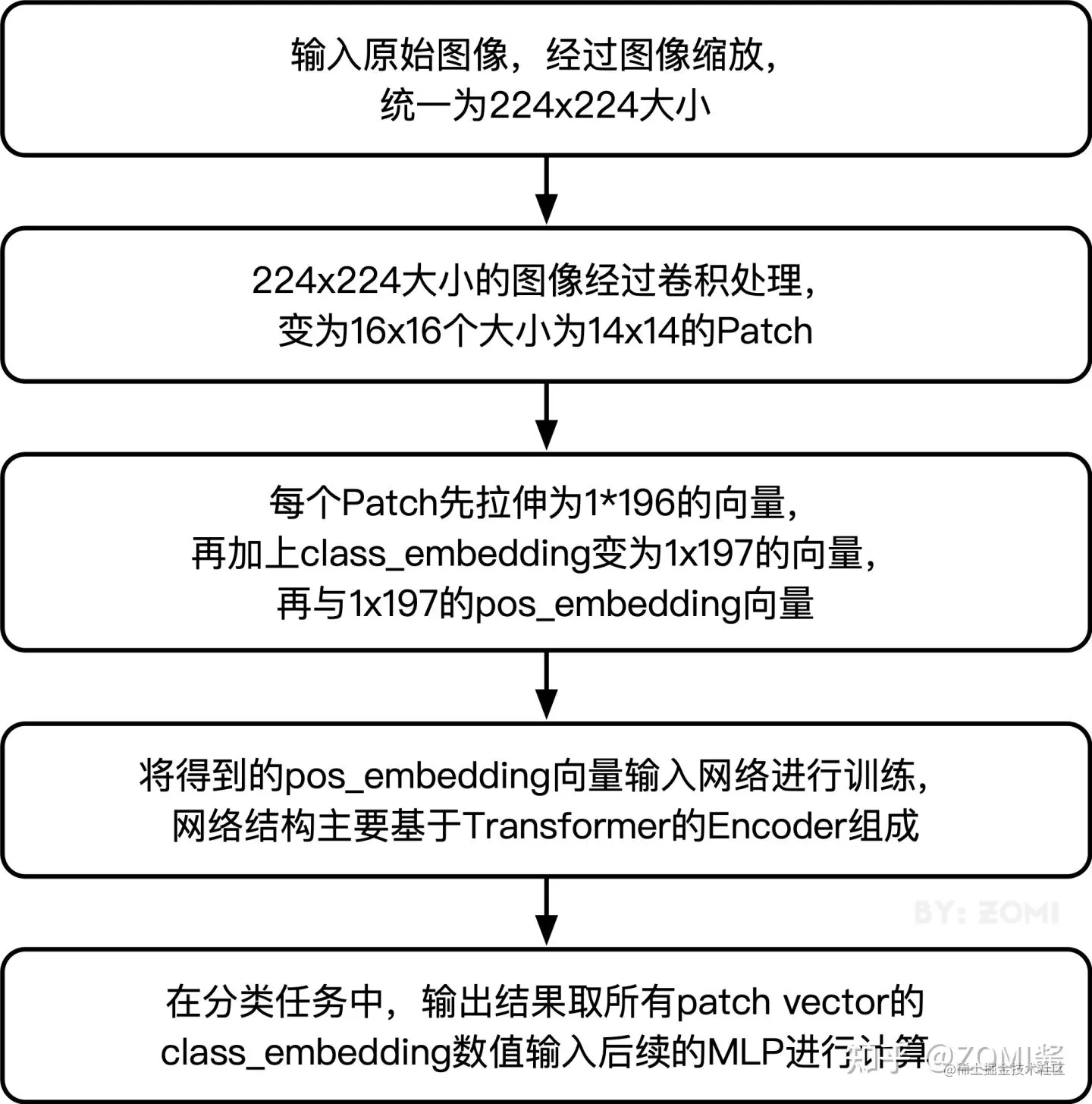 ViT模型是应用于图像分类领域。因此,其模型结构相较于传统的Transformer有以下几个特点: