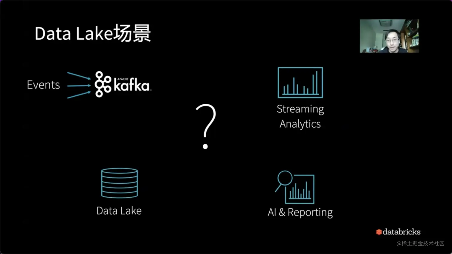 这可能是一个最常见的Delta Lake场景,比如我们有一系列的流式数据,不停的从Kafka系统流入,我们期望具有实时处理的能力。与此同时,我们可以把数据周期性放在Delta Lake中。同时,我们需要整套系统的出口具有AI & Reporting能力。