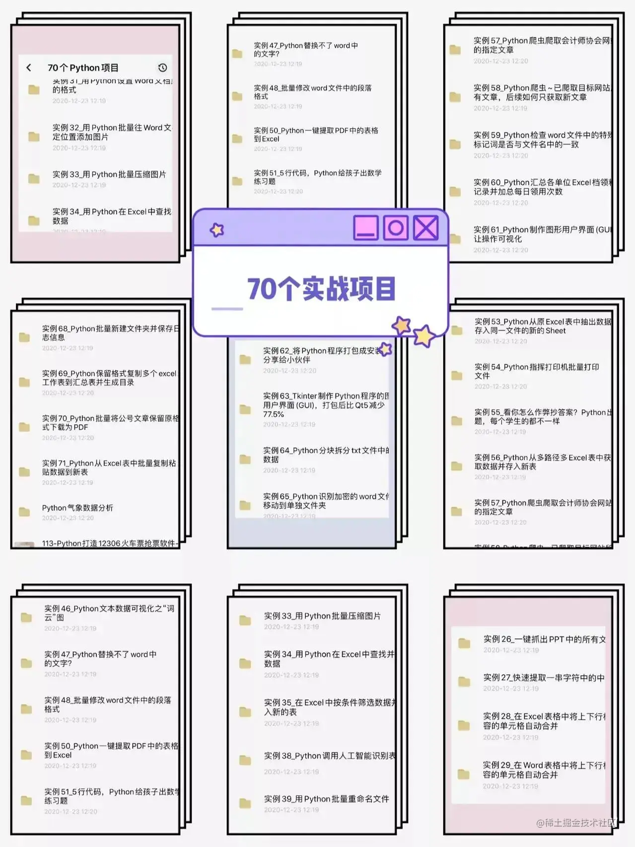 下面就给大家介绍70个通过Python构建的项目,以此来学习Python编程。