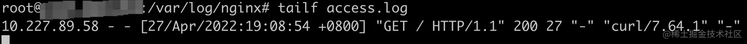 访问本地服务80端口现象与上相同,nginx四七层转发日志如下: