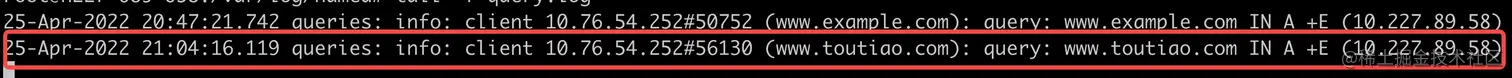 此处dig的验证效果和4.3.3表面上看似无异,但是4层流量是经过nginx stream模块转发的,这里我们可以查询转发日志查询UDP流量转发详情。