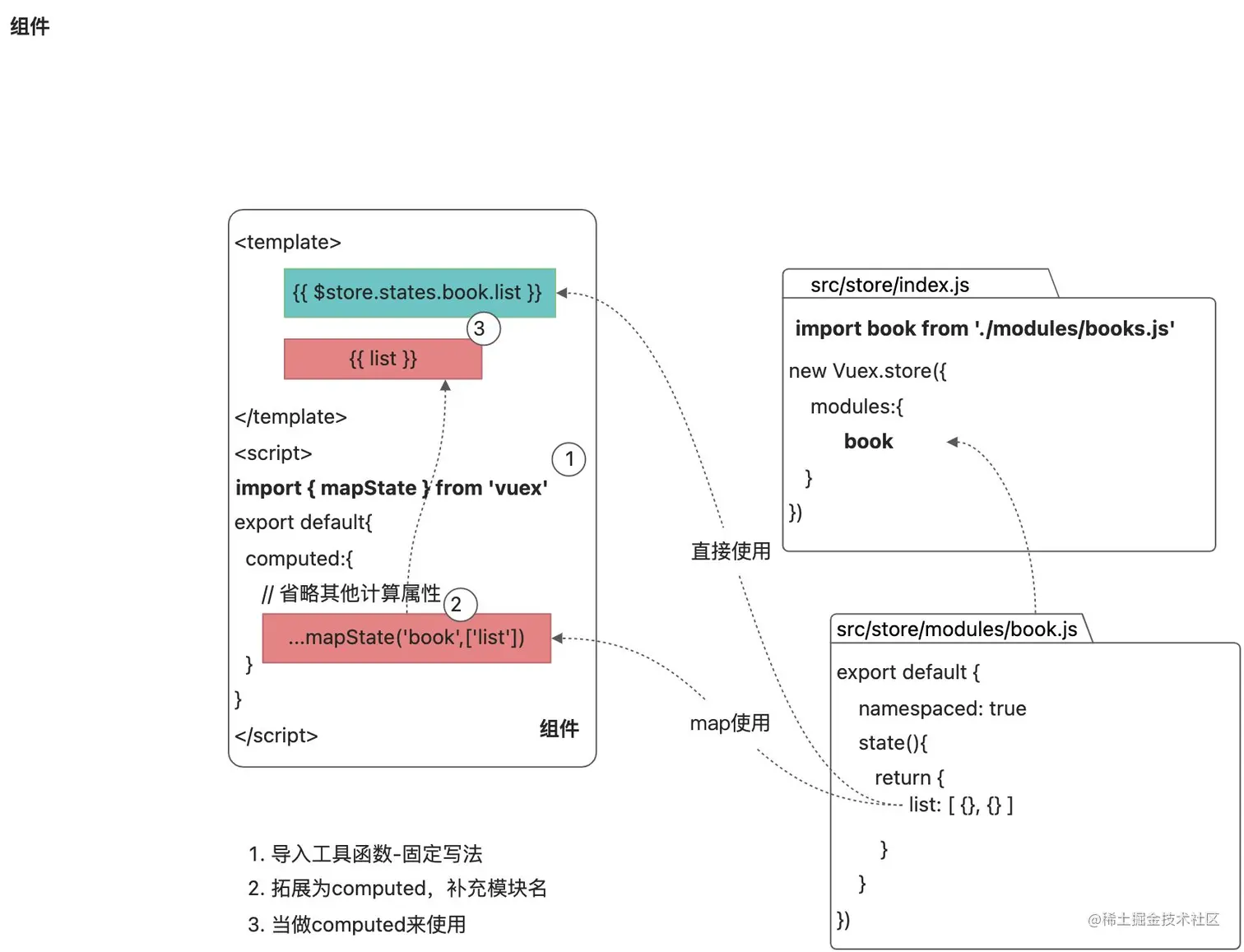 this.$store.state.属性名来访问。 - 在模板中,则可以省略