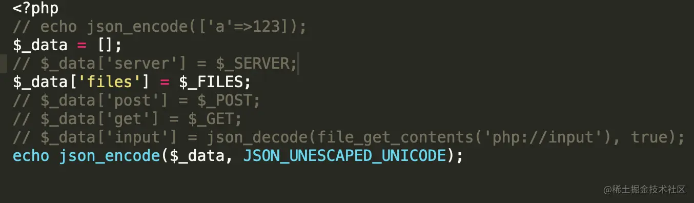 这个后台代码比较简单,就是打印下接受的file数据,相信懂php的你不是问题。