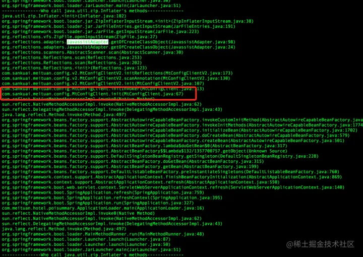 这里基本上就可以看出问题来了:MCC(美团统一配置中心)使用了 Reflections 进行扫包,底层使用了 SpringBoot 去加载 JAR。