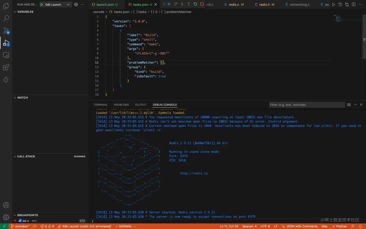 笔者使用的是Mac笔记本,使用lldb作为C语言编译器因此MIMode设置为lldb,如果使用Linux的话可以修改为gbd,但要注意先安装编译器。
