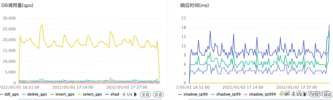 Arena-Jdbc 客户端通过钩子回调,从多维度数据来分析使用数据库的运行情况,以 30s 为一次统计周期,每个周期统计的数据包括:MySQL 总请求量,新增、删除、修改和查询的请求量,失败的请求量和慢请求量,影子库的流量,以及统计响应时间的 TP 百分比,还有连接池的等待时间、建连时间、连接数等信息。这些指标会发送给专门的收集指标服务,并持久化到时序数据库,PaaS 平台可以从时序数据库中查询数据,展示给各个业务,对于异常 SQL 和慢 SQL,做报警等后续处理。