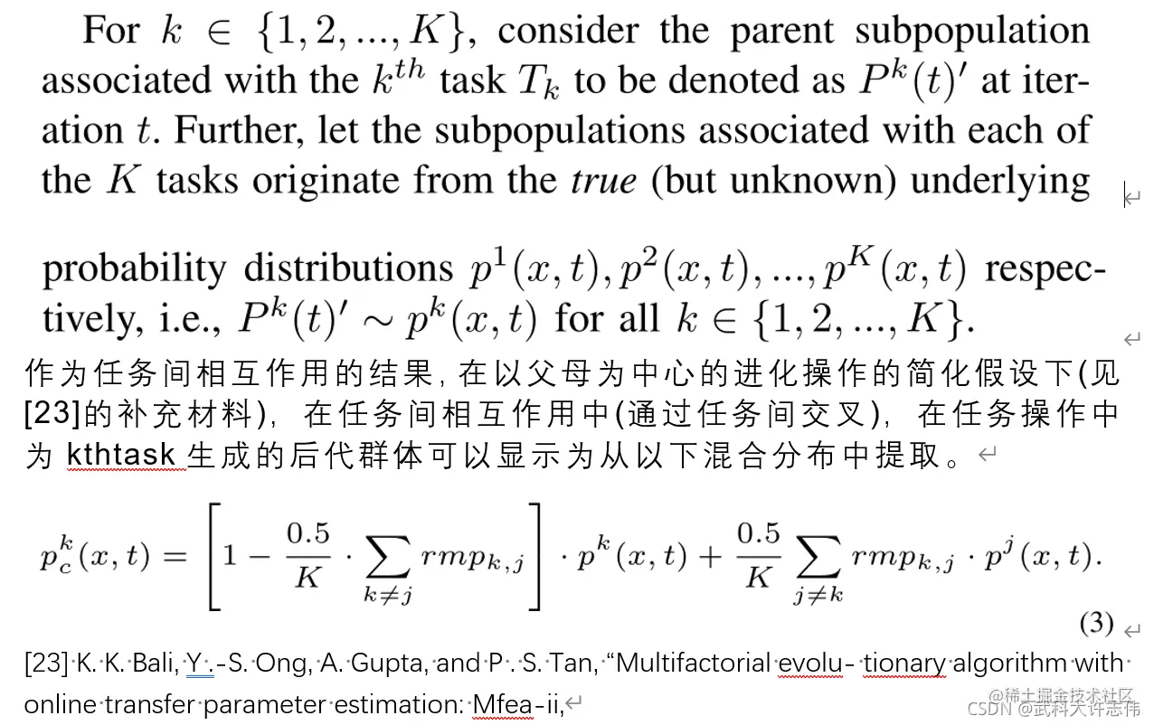 - 在这里,我们简要描述了知识转移是如何在最初的MFEA任务中实现的,通过从不同任务中提取的搜索分布的隐式混合。