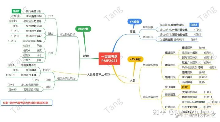 注:PMP新内容主要专注于三大领域:人员、过程、业务环境,主要细分为14、17、4个任务。