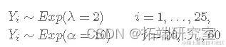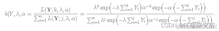 其中 k 未知且 k=1,2,...,n。让 Yi为公交车到达公交车站之间经过的时间(以分钟为单位)。假设变化点发生在第 k分钟,即: