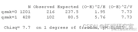 survdiff(Surv(srtm, dah) ~ qmk, data=nes)