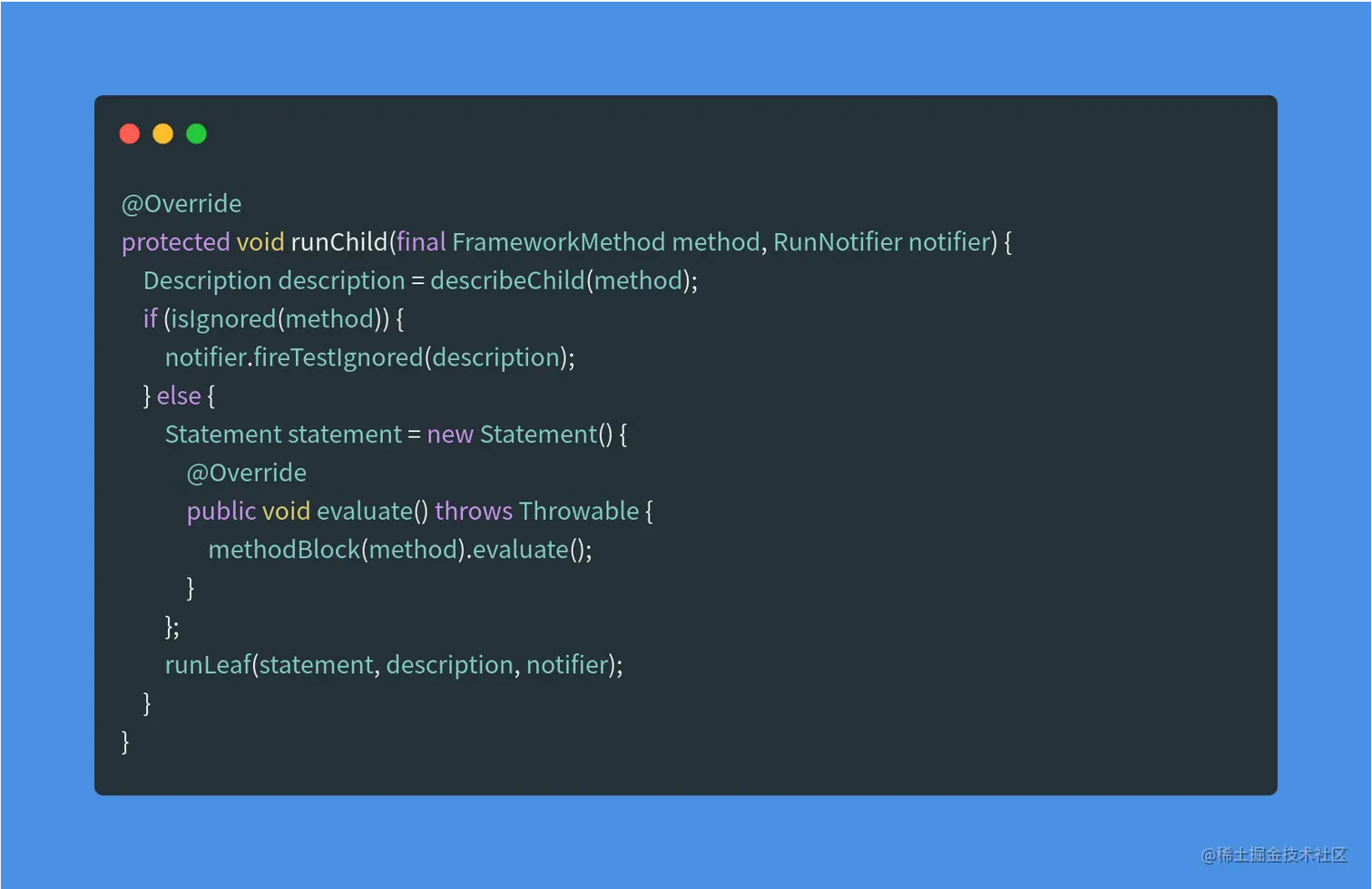 我们这里直接看BlockJUnit4ClassRunner的runChild方法。