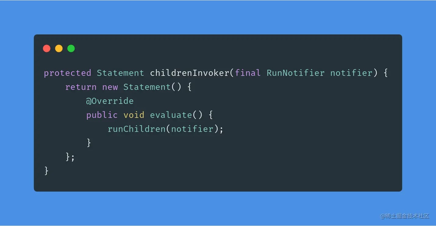 首先childrenInvoker方法(见下图)直接构建了一个Statement的匿名实现类,来包装执行类里所有符合条件的测试方法。