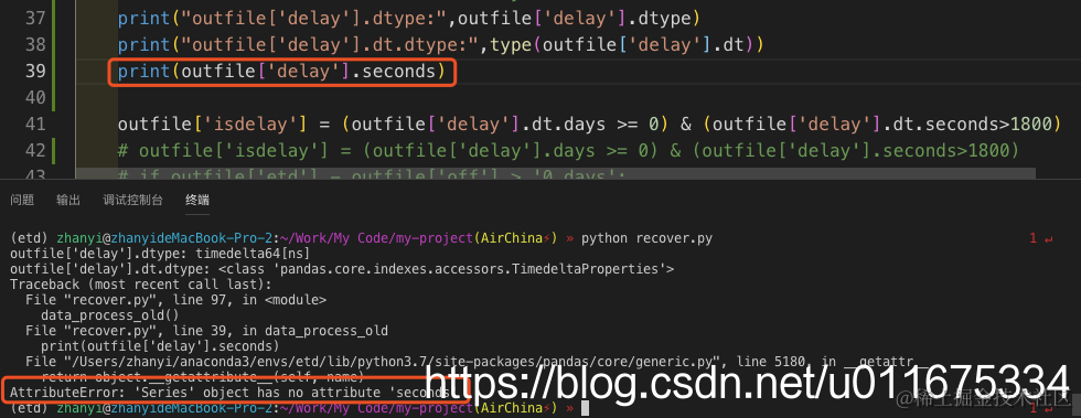 1)如果 file['delay'] 是 Series类型,用 file['delay'].dt.days