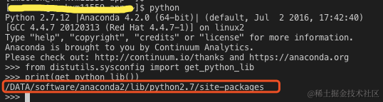 服务器 Linux环境上查看Python site-package 包所在位置 程序媛三妹 2022-05-14 107 阅读1分钟 一、需求 在服务器 liunx 环境上修改查看 python 的包路径 site-package 二、解决方法 尝试以下命令: from distutils.sysconfig import get_python_lib print(get_python_lib()) 输出类似如下: 以上,问题解决~