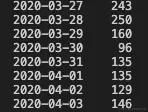 Pandas groupby分组后求各组行数 程序媛三妹 2022-05-14 457 阅读1分钟 一、需求 CSV 文件中,按 ‘date’ 列分组,求分组后各个分组的行数。 二、代码 import pandas as pd data = pd.read_csv('test.csv') df = pd.DataFramd(data) df = df.groupby('date').size() # 统计各个分组行数 _list = df.to_list() print('_list:',_list) 打印效果如下: