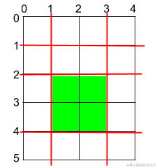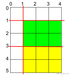 解释: 上图所示的矩阵蛋糕中,红色线表示水平和竖直方向上的切口。切割蛋糕后,绿色的那份蛋糕面积最大。