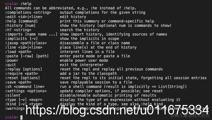 MAC 安装 Scala 与退出命令行 程序媛三妹 2022-05-14 423 阅读1分钟 1、安装 Scala brew install scala 2、查看是否安装成功及进入 Scala 命令 scala 若成功安装,界面为: 3、退出命令行模式 :quit 4、补充命令