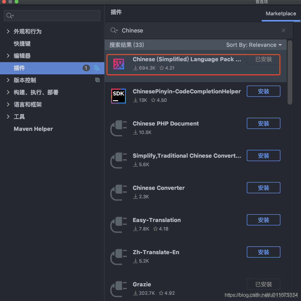 IntelliJ 中文版 程序媛三妹 2022-05-14 89 阅读1分钟 一、问题 有没有汉化版的 IntelliJ ? 二、解答 其实 2020.1 月版本的 IntelliJ 就支持中文了,只要下个插件即可。如图: 以上,问题解决~