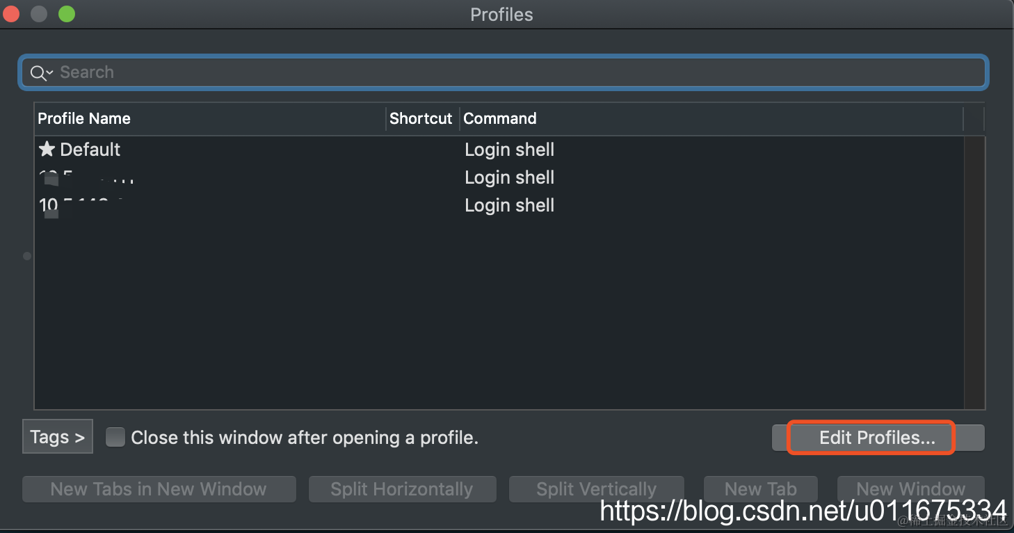 左侧打码部门就是你连接的所有服务器的IP,右侧 Name 栏是你起的名字,这样就是展示在 profiles 下面,一般我都直接以服务器 IP 命名。